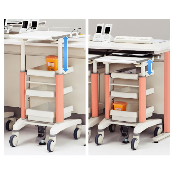 必要なツールをカートに載せ、病室で、スタッフステーションで、多様な作業をしっかりと支えます。